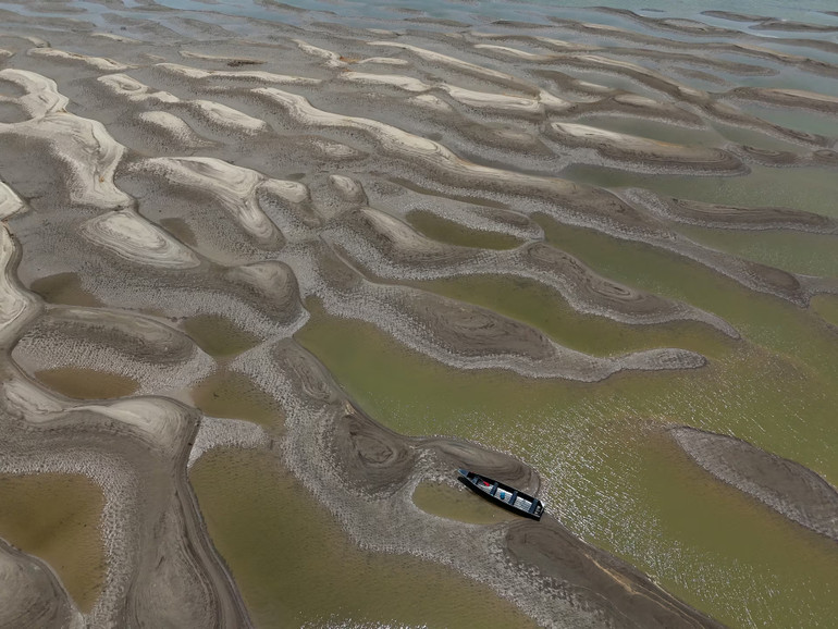 Không chỉ cá heo, các cộng đồng dân cư ven lưu vực Amazon cũng đang phải chịu ảnh hưởng nặng nề từ hiện tượng thời tiết cực đoan. Nước quá cạn khiến thuyền bè không thể di chuyển, đẩy người dân vào cảnh bị cô lập. Những ngôi nhà nổi của họ giờ nằm trơ trọi trên nền cát khô.